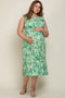 Details A textured maternity plus size midi dress with a squared neckline, a smocked back, a chevron top, and a striped tiered skirt. Content + Care