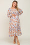A floral print maternity cover up featuring long ruffle bell sleeves.