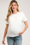 A gingham maternity midi dress with a v-neckline, short puff sleeves, a back tie, back zipper closure, and a tiered skirt.
