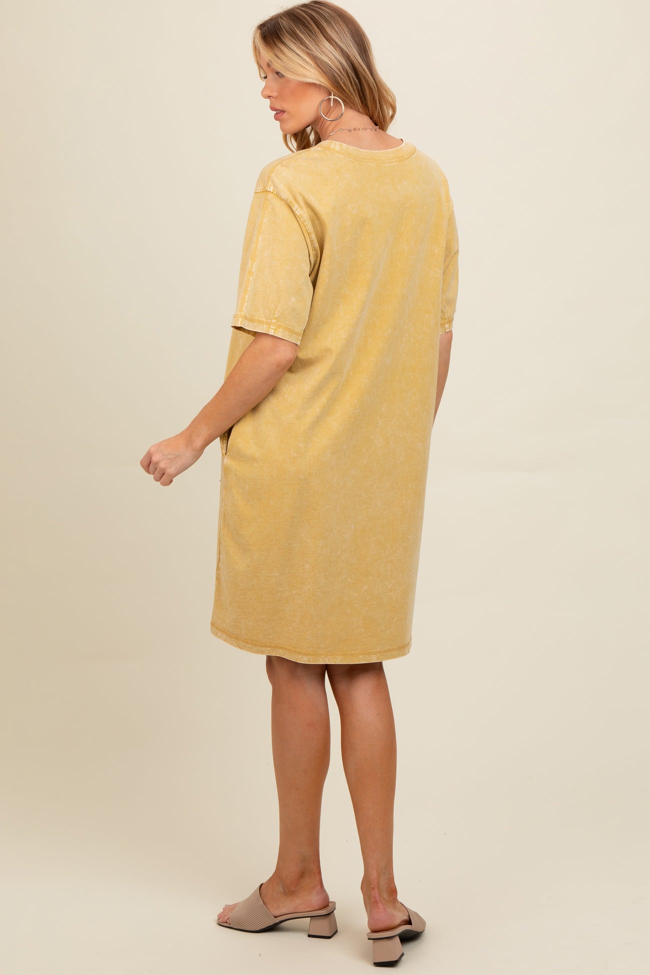 Yellow Rhinestone Mineral Washed Maternity T-Shirt Dress