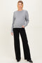 A ribbed fitted midi dress featuring a mock neckline, long sleeves and a side slit.