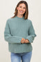 A solid hue top with long raglan sleeves, a rounded neckline, and a rounded hi-lo hem. Seams are exposed with raw hems.