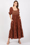 Beige Floral Embroidered Short Puff Sleeve Maternity Plus Dress