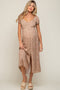 Details A lightweight maternity midi dress with a squared neckline, long cinched sleeves, and a smocked top. Content + Care