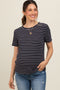 Beige Striped Ruched Side Maternity Long Sleeve Top