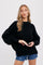 A knit pullover sweater featuring long sleeves and a mock neckline.
