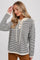 A striped knit sweater featuring a hood with an adjustable drawstring and long sleeves.