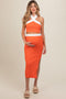Blue Colorblock Knit Crop Top Skirt Maternity Set