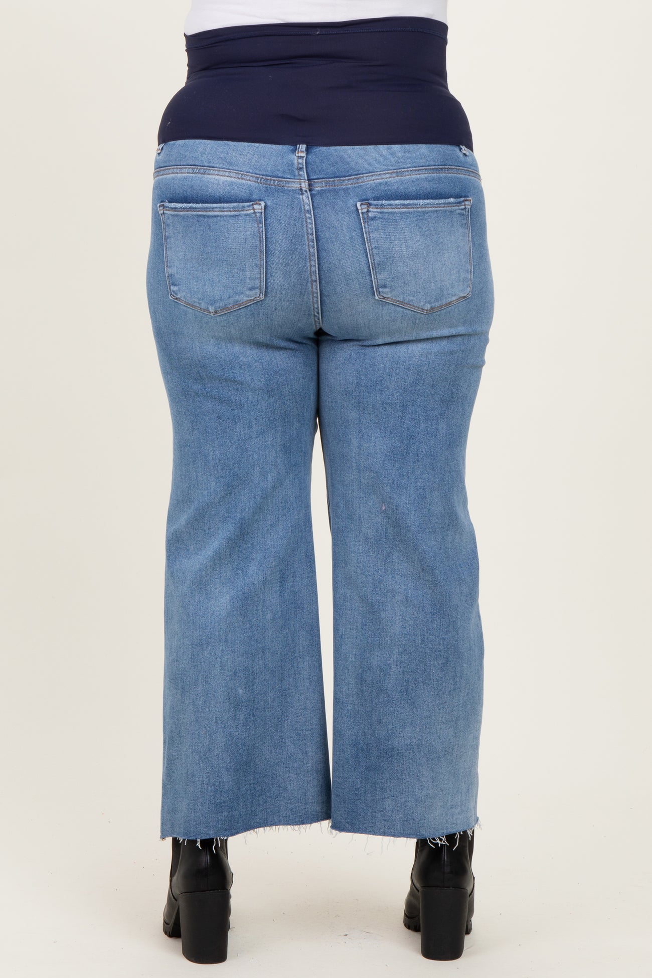 Blue Cut Hem Cropped Wide Leg Maternity Jeans