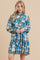 Blue Floral Chiffon Ruffle Mock Neck Tiered Dress