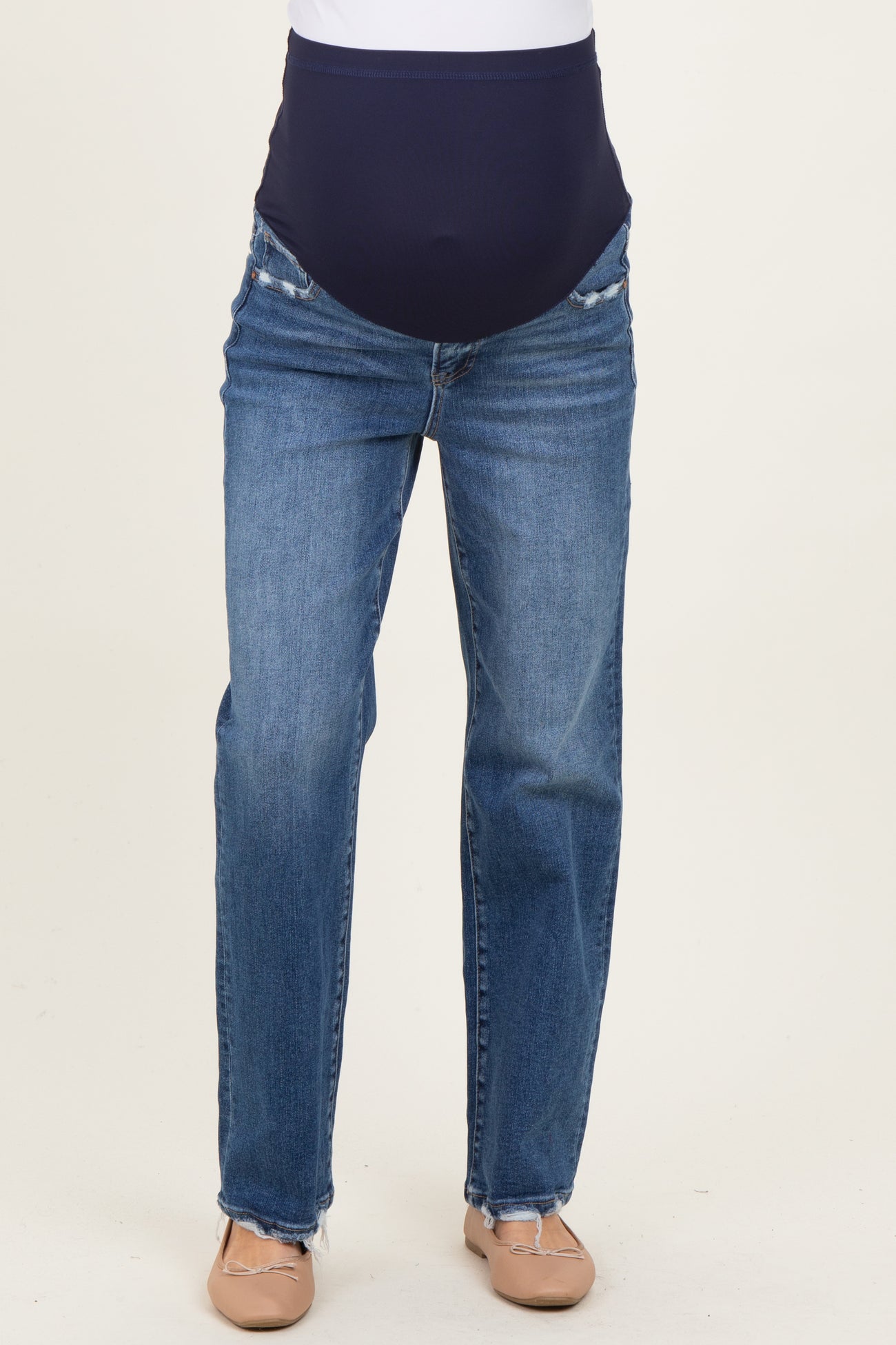 Blue Lightly Distressed Straight Leg Maternity Jeans