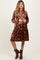 Brown Floral Velvet Button Down Maternity Midi Dress