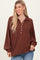 Brown Solid Ribbed Long Sleeve Button Down Collared Top