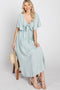 An ultra soft, brushed knit nursing fitted dress featuring a v-neckline with a wrap front and side tie detailing for easy access. Also features 3/4 length sleeves.