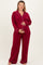 Burgundy Button Down Top Wide Leg Pant Maternity Plus Pajama Set