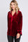A velvet blouse featuring a button down front, long sleeves, a front pocket and a collared v-neckline.