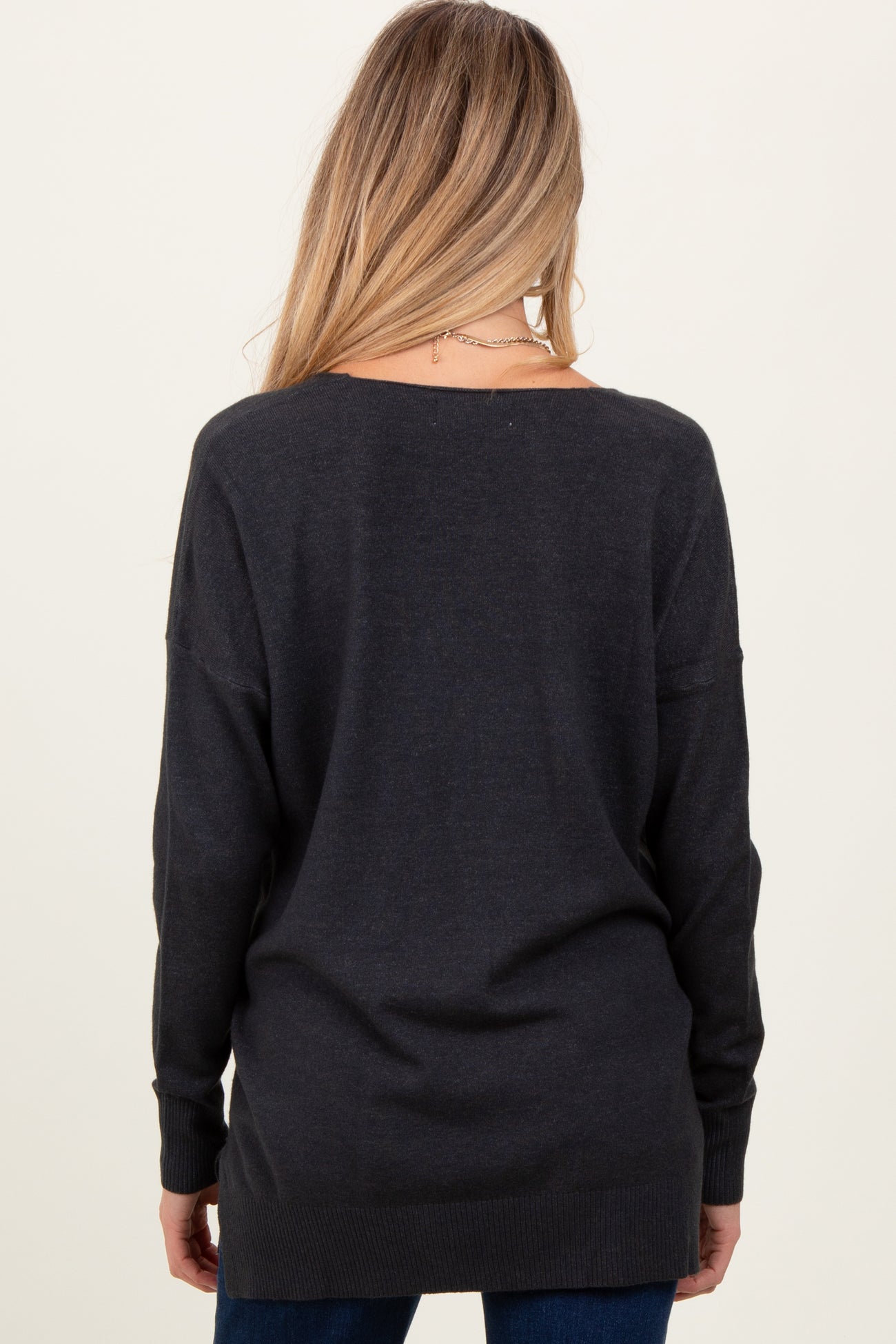 Charcoal Front Seam V-Neck Side Slit Maternity Sweater