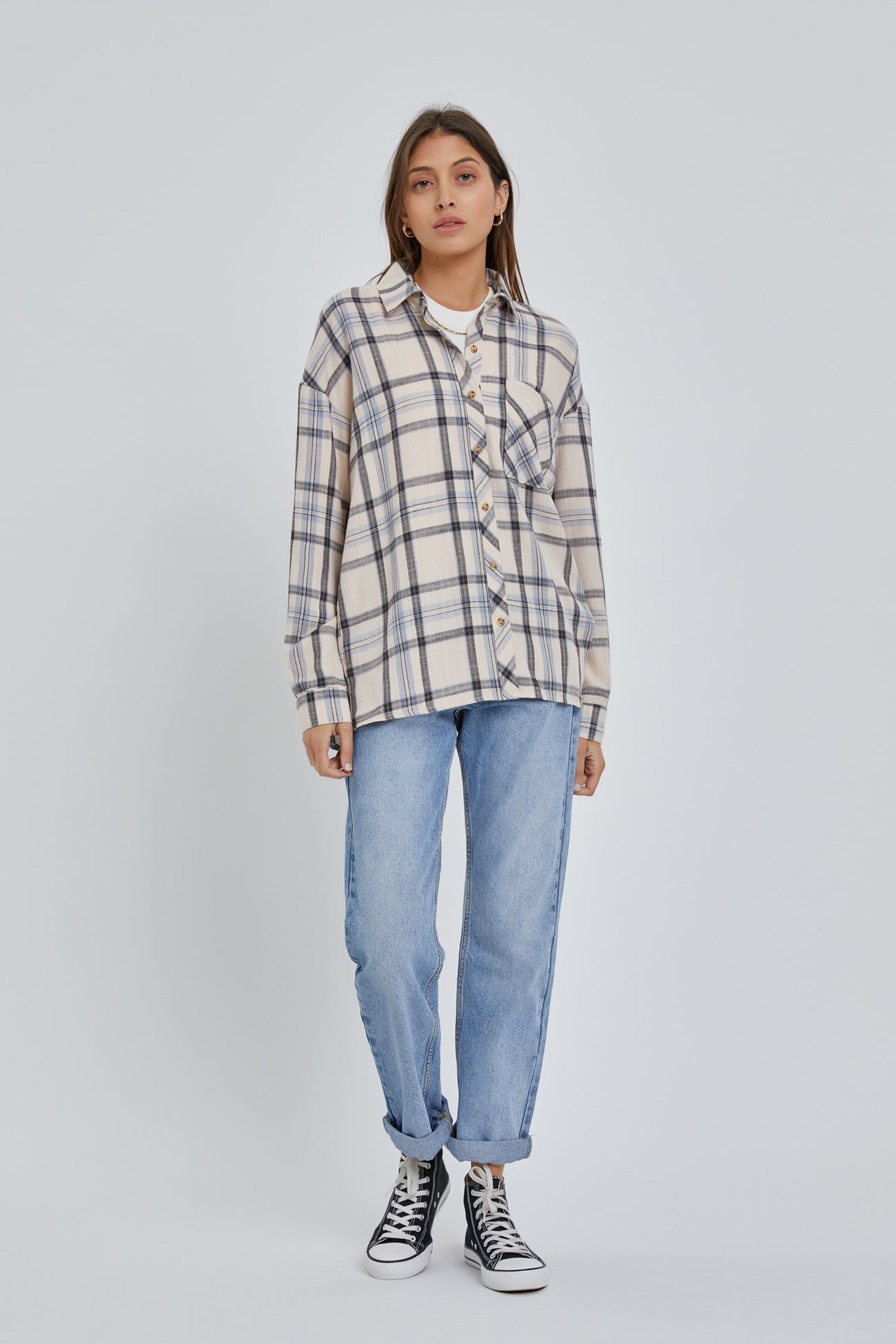 Details A soft flannel plaid top featuring a collared neckline, a button front, a front pocket, long sleeves and side slits. Content + Care
