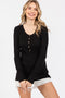 Details A solid knit ribbed long sleeve henley top. Content + Care