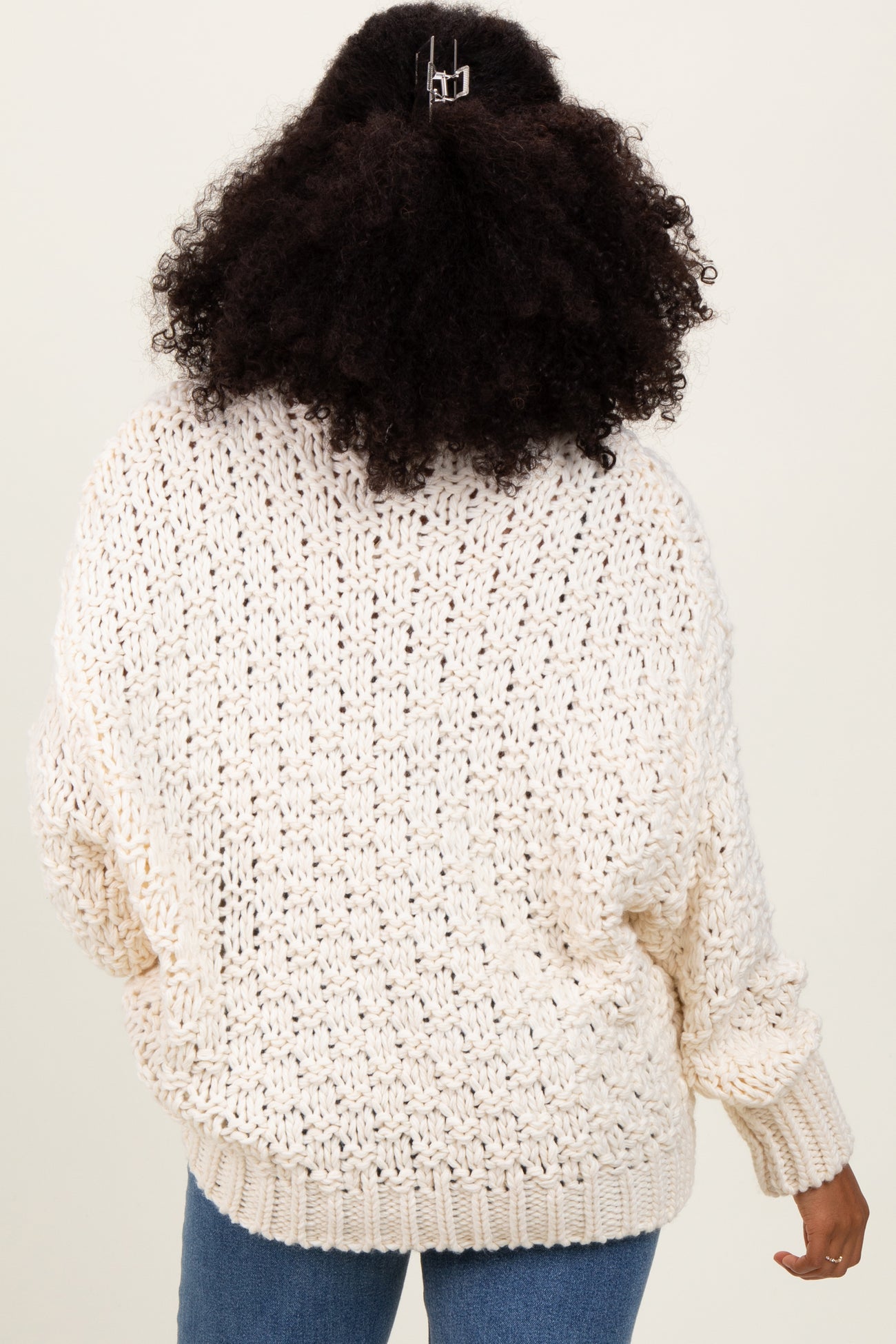 Cream Turtle Neck Chunky Crochet Knit Sweater