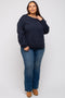 Dark Blue Waffle Knit Rounded Hem Sweater