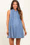 A leaf print maternity plus size dress with a ruffle accent collar, a front tie, long cinched sleeves, and a tiered skirt.