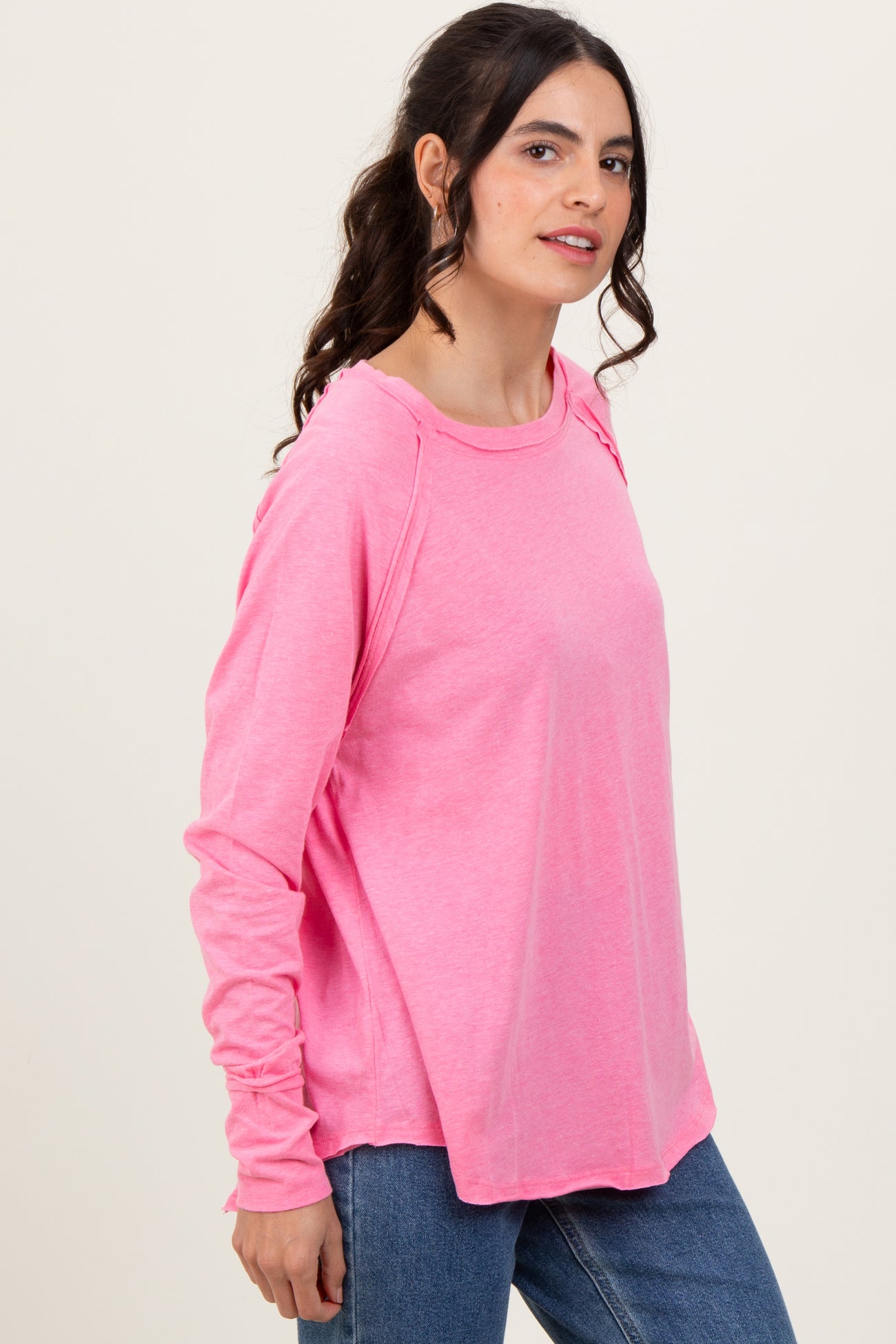 Fuchsia Heather Exposed Seam Long Sleeve Top