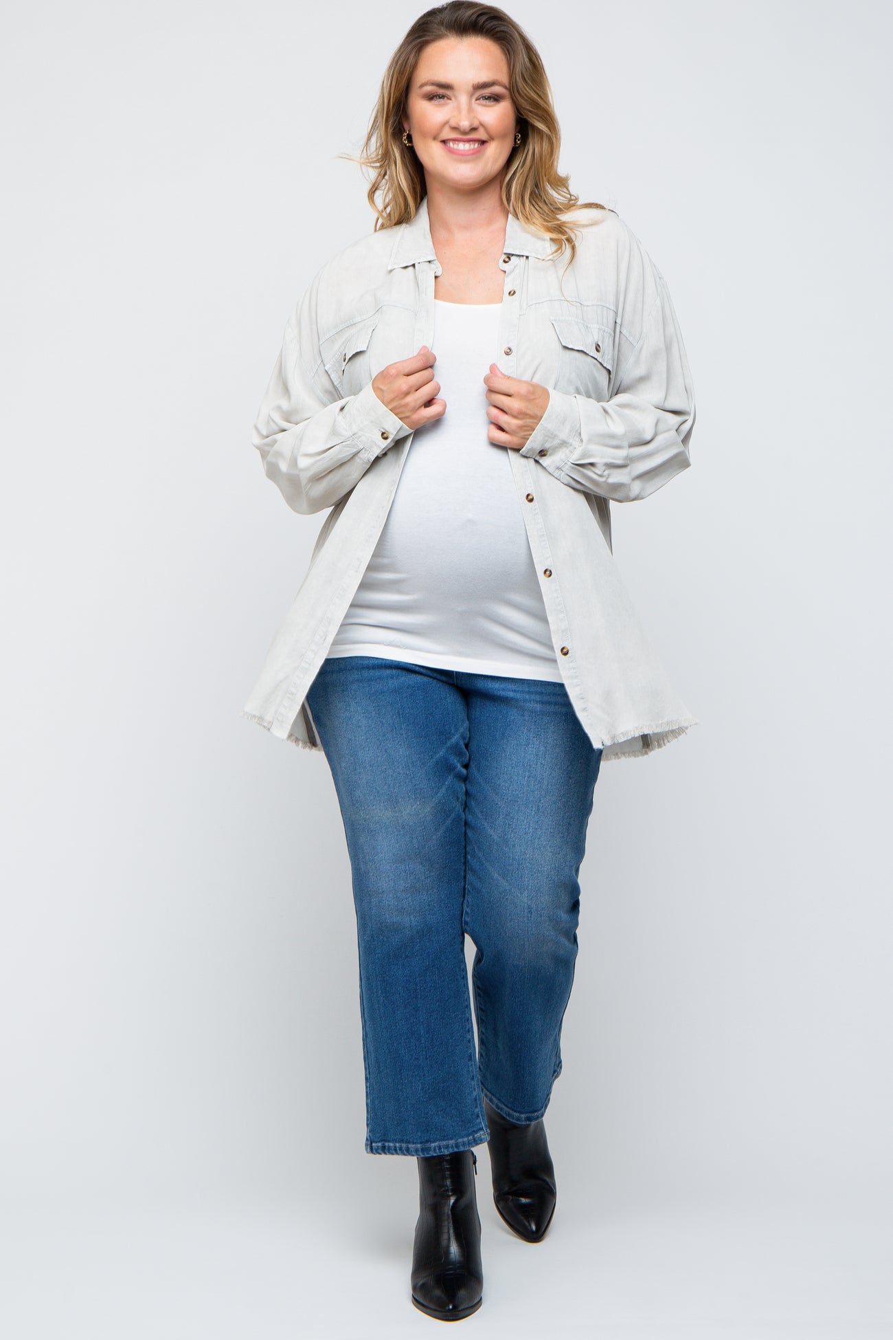 Grey Button Up Fringe Hem Maternity Plus Top