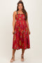 Grey Floral Striped Sleeveless Shoulder Tie Midi Dress