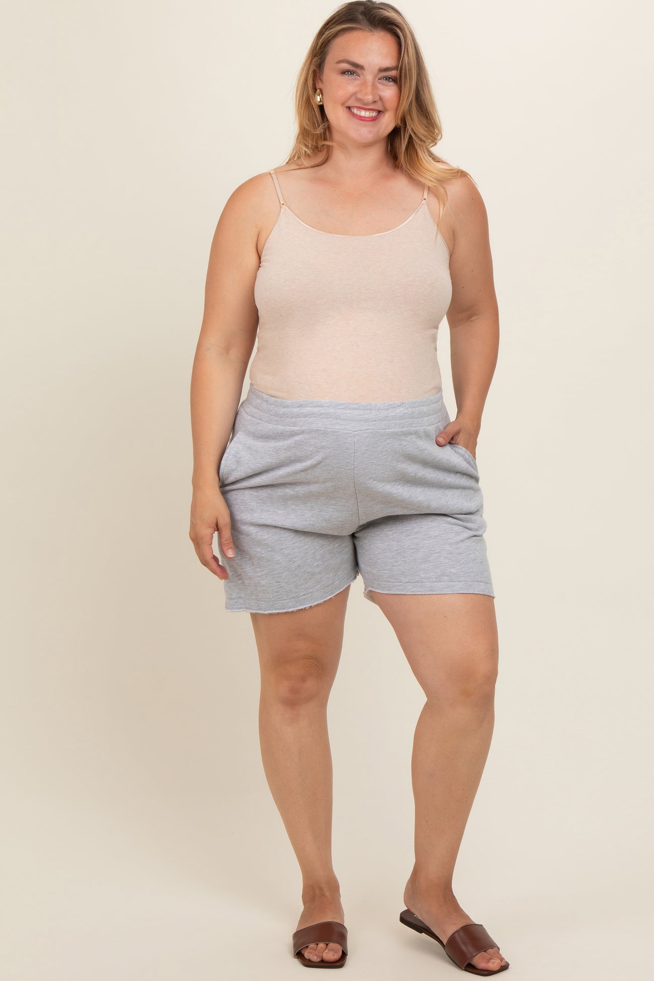 Grey Raw Edge Maternity Plus Sweat Shorts