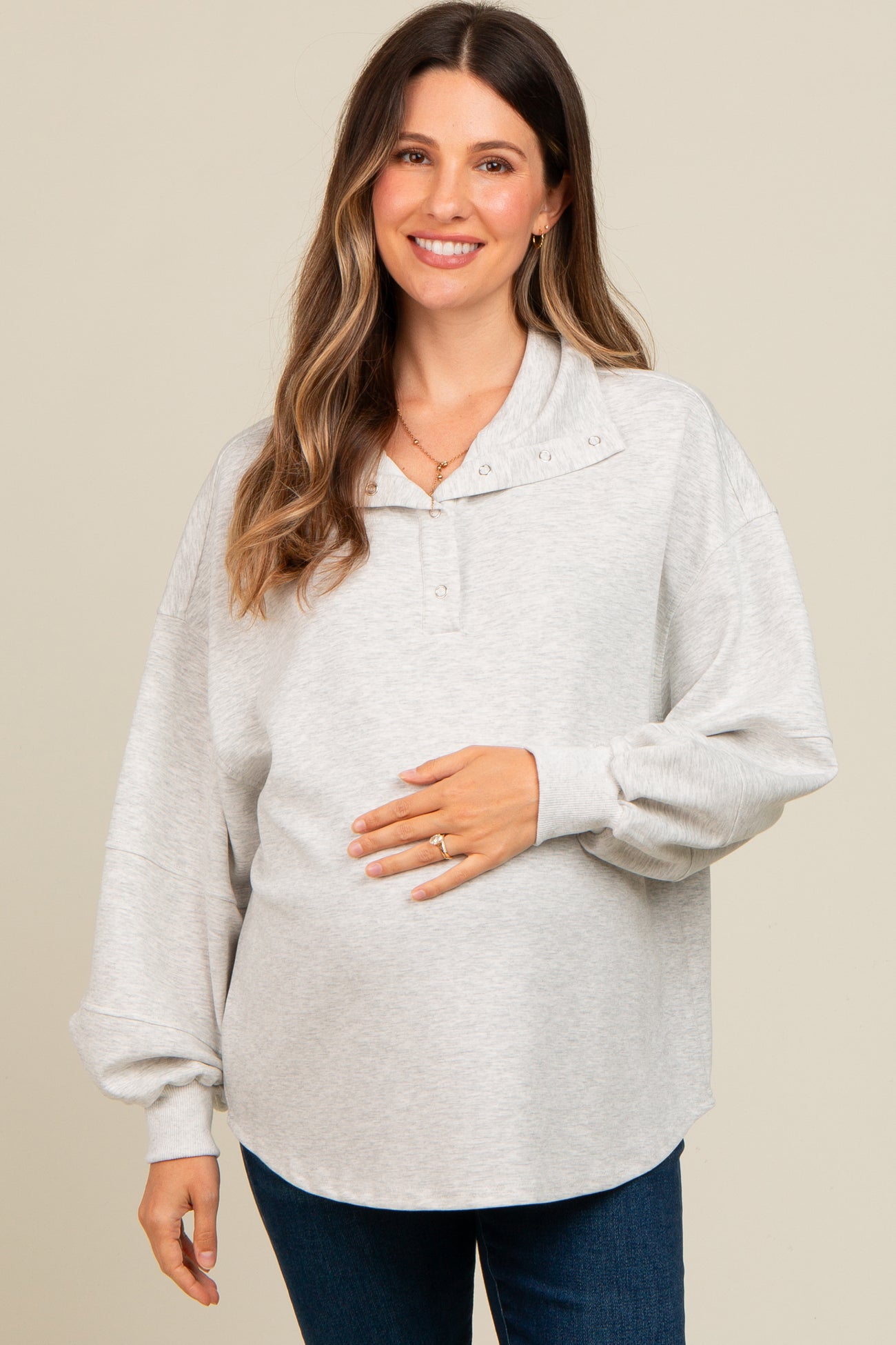 Heather Grey Snap Collar Oversized Maternity Pullover