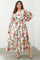 Ivory Floral Front Button Waist Tie Plus Midi Dress