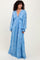 Light Blue Paisley Deep V-Neck Long Sleeve Maxi Dress
