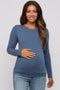 A basic solid maternity tee with an oversized fit, short sleeves, and a rounded neckline.