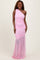 Light Pink Ruched Mesh One Shoulder Maxi Dress