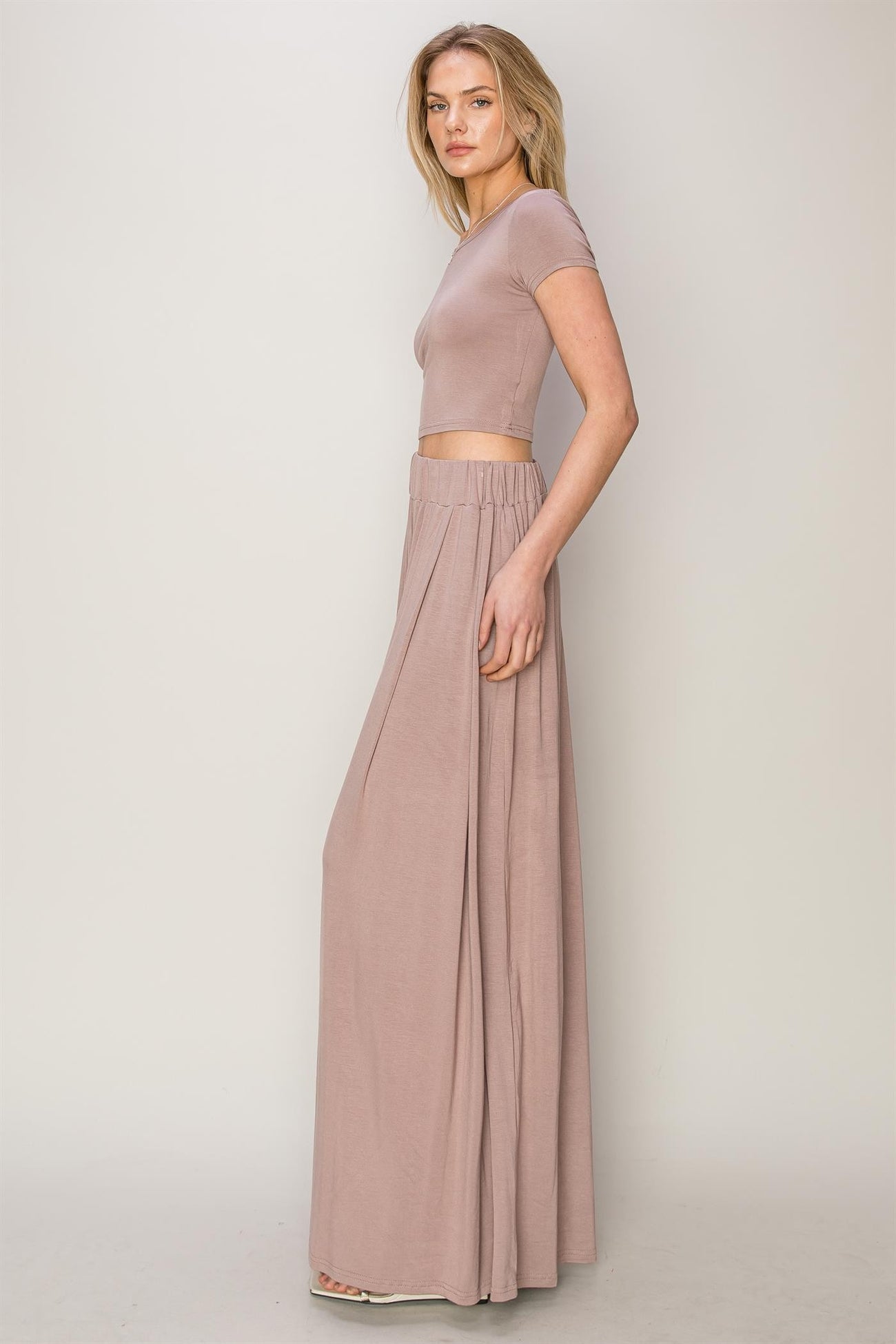 Mauve Crop Top Wide Leg Pant Set