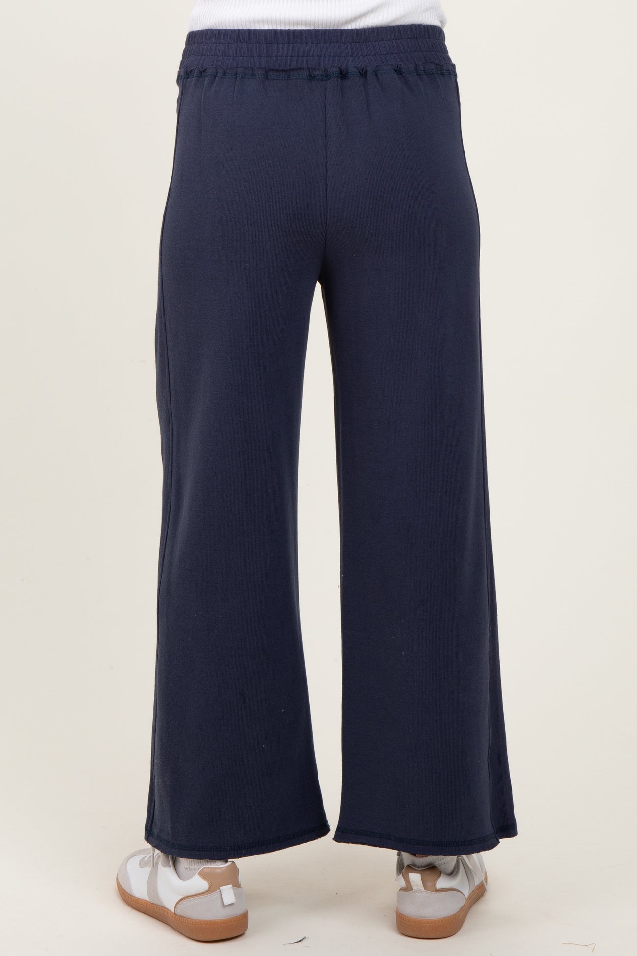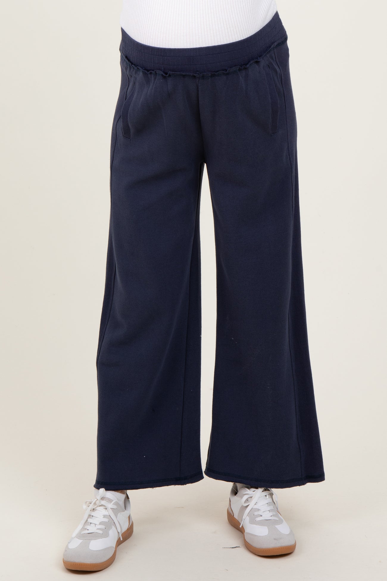 Navy Ribbed Side Panel Wide Leg Maternity Sweatpants