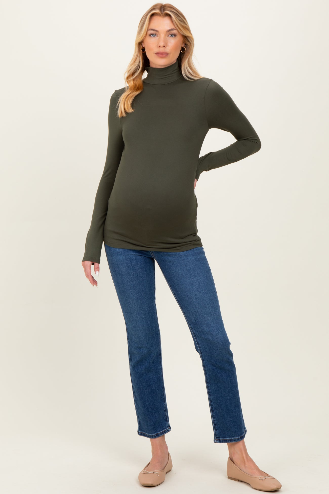 Olive Maternity Mock Neck Top