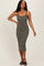 Olive Striped Thin Strap Fitted Midi Dress