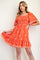 Orange Embroidered Detail Smocked Tie Back Dress