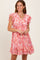 Pink Floral Chiffon Ruffle Short Sleeve Dress