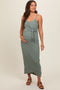 Rust Acid Wash Ribbed Sleeveless Maternity Midi Dress