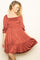Elevate your wardrobe with our Rust Suede Dress, a perfect blend of comfort and style. Featuring a rich rust hue and a soft suede-like fabric, this dress offers a flattering square neckline and smocked bodice that hugs your figure while allowing easy movement. The three-quarter puff sleeves with elastic cuffs add a touch of romantic flair, and the flowy skirt with a subtle ruffle hem is perfect for all-day wear. Ideal for casual outings or dressed-up occasions, this versatile dress brings effortless sophistication to your look. Pair it with boots or heels for a chic fall-ready outfit!