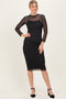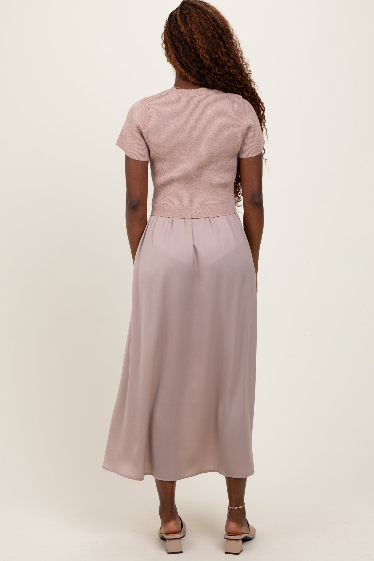 Taupe Knit Contrast Top Satin Short Sleeve Midi Dress