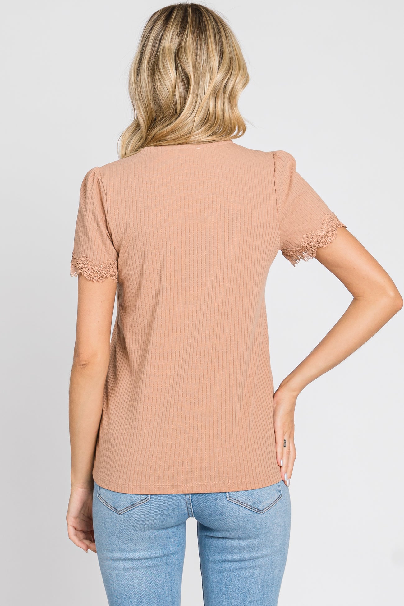 Taupe Ribbed Lace Trim Top
