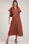 Taupe Striped Sleeveless Tiered Linen Maternity Midi Dress