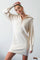 A solid mini knit sweater dress with a half zip contrast rib collar and long puff sleeves.