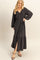 Black Elegant Long Sleeve Waist Tie Midi Dress