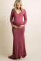 A pair of solid maternity knit pants with a high waist fit, a wide waistband, and side pockets.