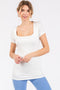 A solid short sleeve fitted dress in a ribbed material with a round neckline.